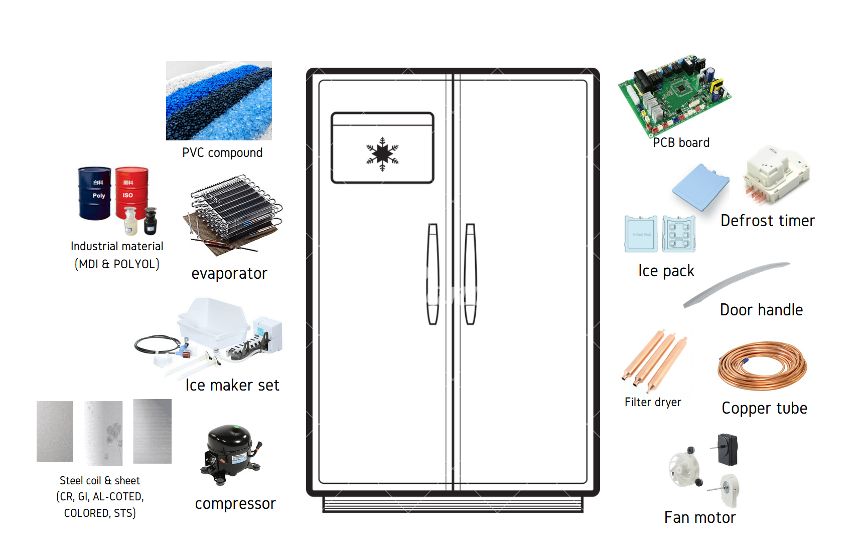 Boen international, a fast growing and leading home appliance parts provider, has developed into a leading professional manufacturer and supplier of refrigerator spare parts. Our products range includes fan motors, PCM, VCM, PCB, Ice maker, door handle, MDI, POLYOL, Cyclopentane, damper, thermostats, etc...